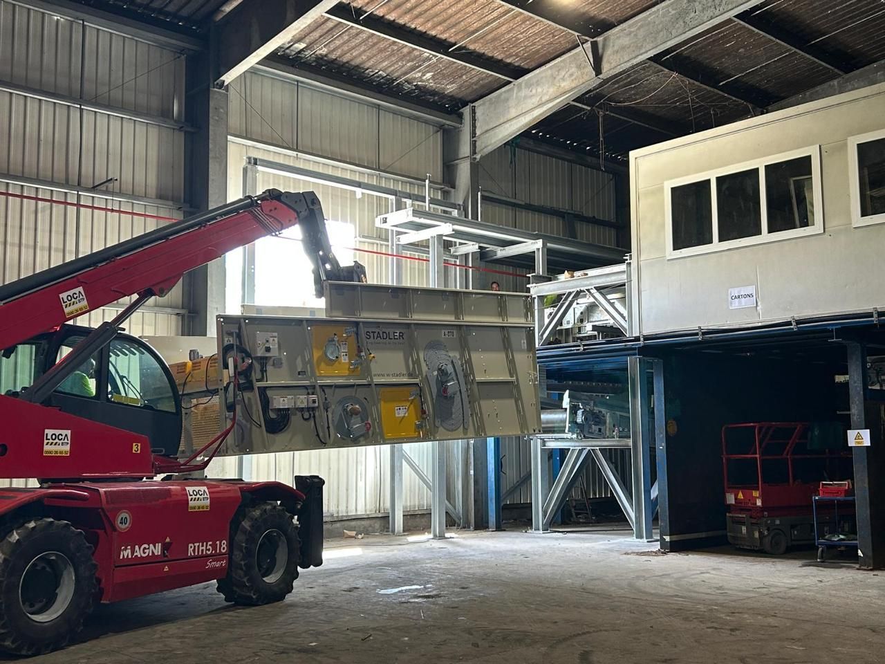 Pendant la période de travaux, la presse à balles a été déplacée et nous produisons actuellement des balles de mélange de collecte sélective. Celles-ci seront retraitées sur la nouvelle ligne dès sa mise en service.